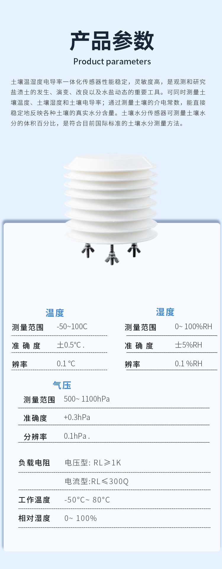 诺博仪器 百叶箱温湿度气压传感器点击次数:81