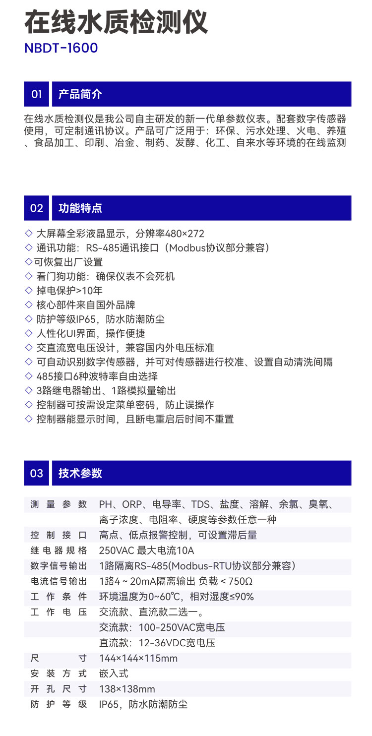 水质检测控制器是我公司自主研发的新一代仪表,支持测量多种水质参数,包括PH、ORP、