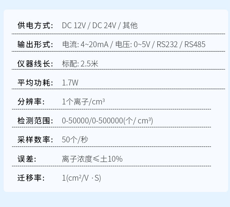 5、内置先进的放大电路,可高灵敏地探测负离子数量。