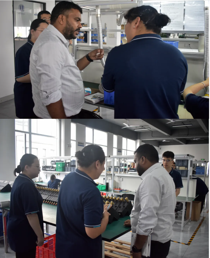 在总经理、研发技术经理的陪同下,客户认真听取了我们对公司及产品的专题介绍,先后参观了我司的产品展示大厅、生产调试质检车间、研发实验室、成品仓库等,并就产品功能、生产工艺、质检流程、核心技术等方面进行了深入的了解。