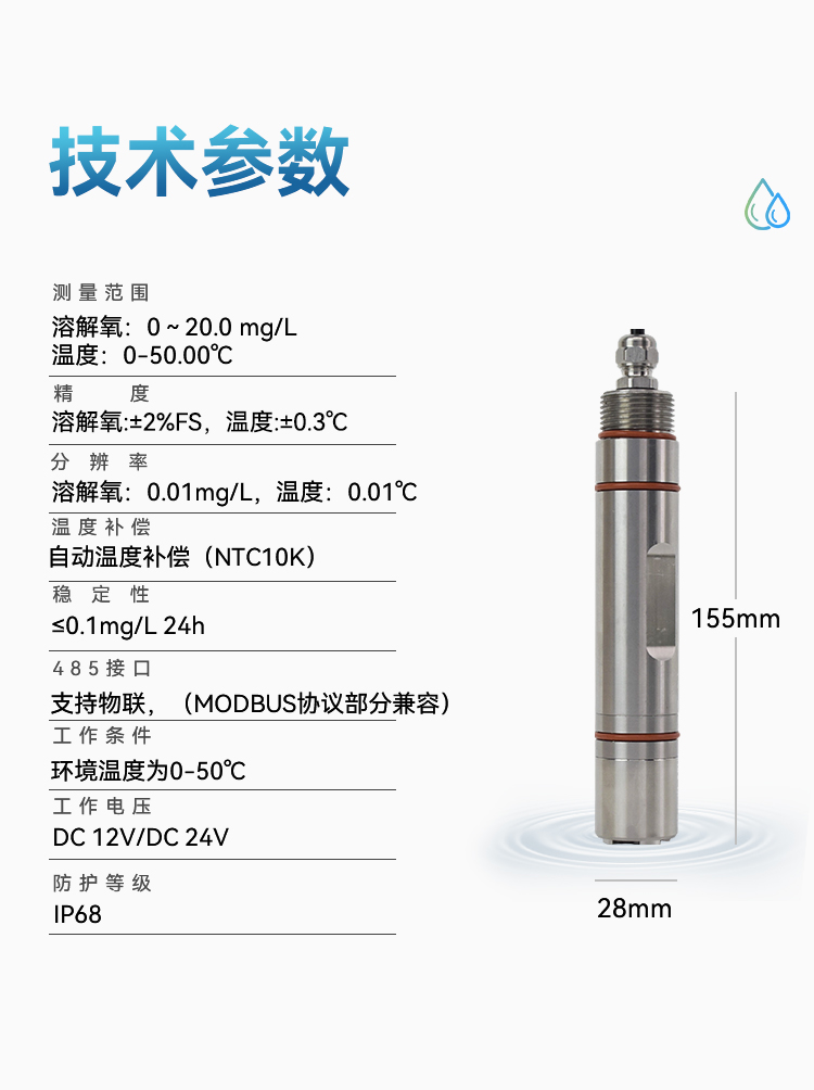 南宁诺博荧光法溶氧数字传感器 NS-DO602 水产养殖水中溶解氧浓度检测